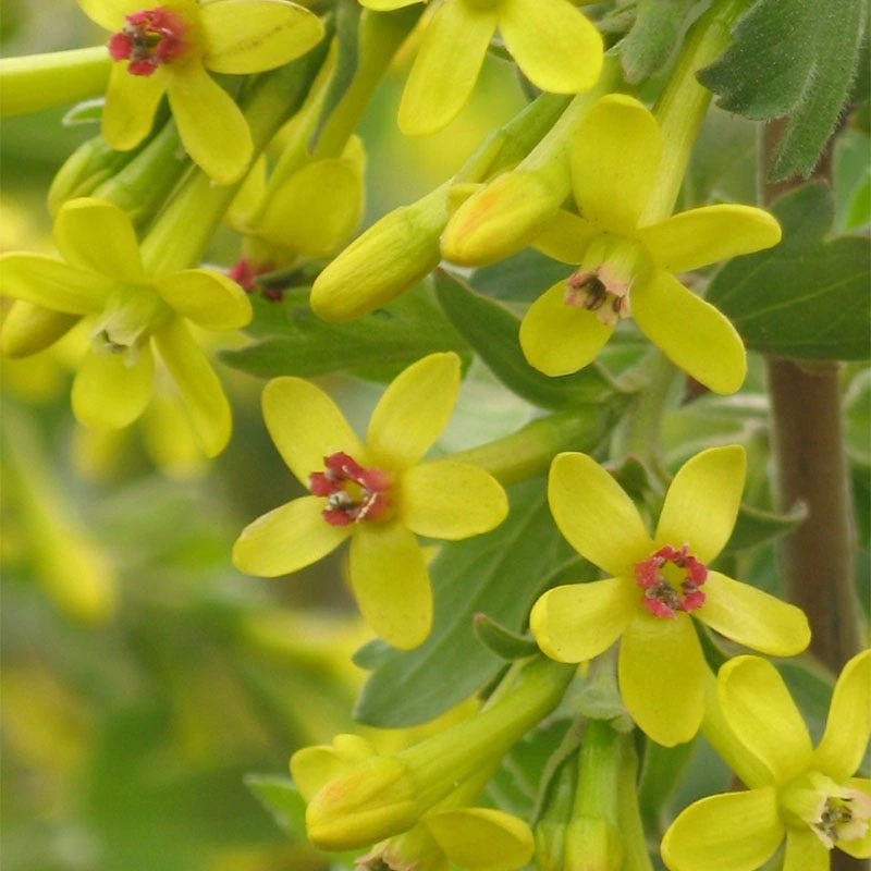 4-6′ tall x 4-6′ wide. This intensely fragrant, fast growing heirloom selection of a native currant was originally chosen for its abundant crop of flavorful black fruit. But Ribes odoratum Crandall’s clove-scented yellow spring flowers and mahogany-red fall foliage make it a plant with three seasons of garden beauty. Thrives in all but dry sand or wet clay soils. (cutting propagated)